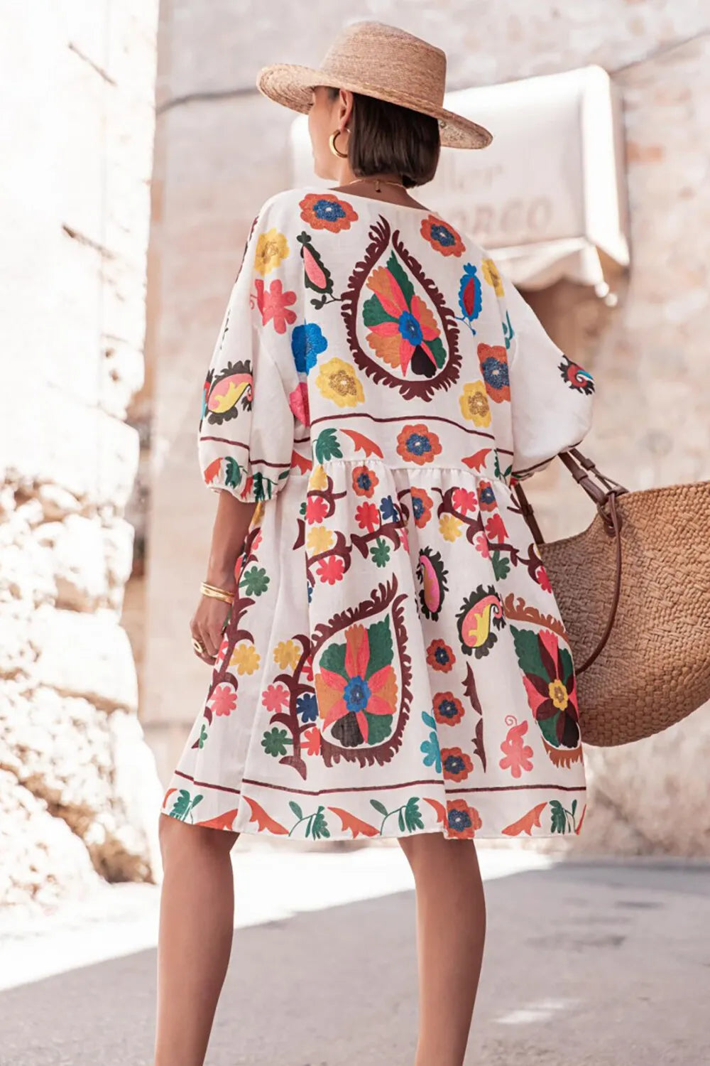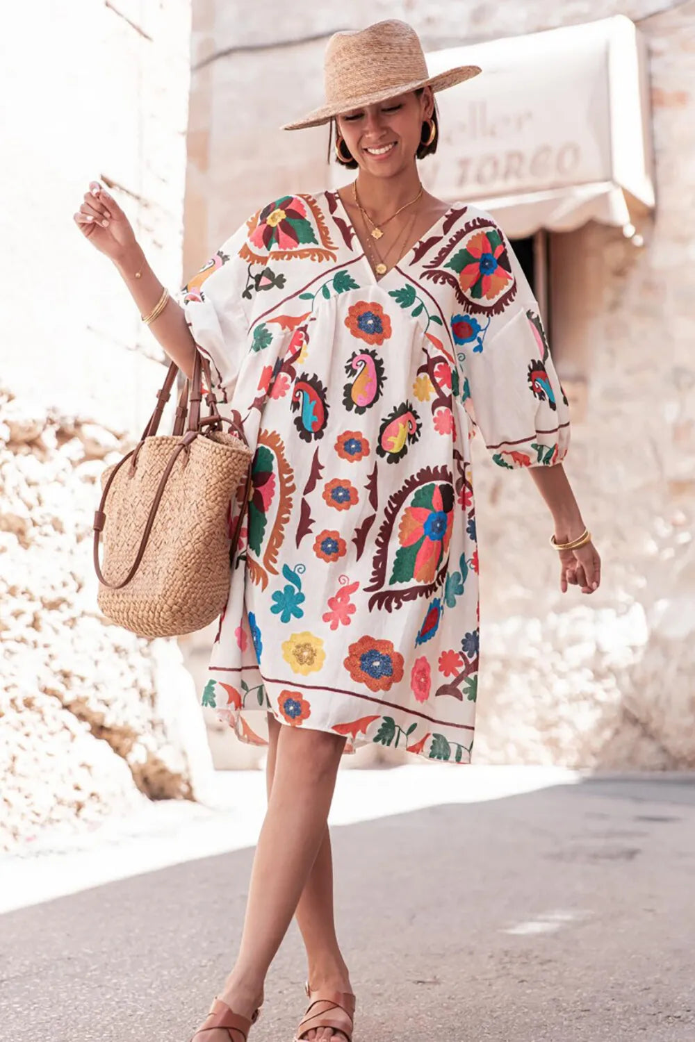 The Joyful Bloom Dress offers a gorgeous printed design with a flattering V-neck and a casual, loose fit that ensures all-day comfort. Perfect for relaxed outings or casual gatherings, this dress combines effortless style with breathable ease, making it a versatile addition to your wardrobe.charm.