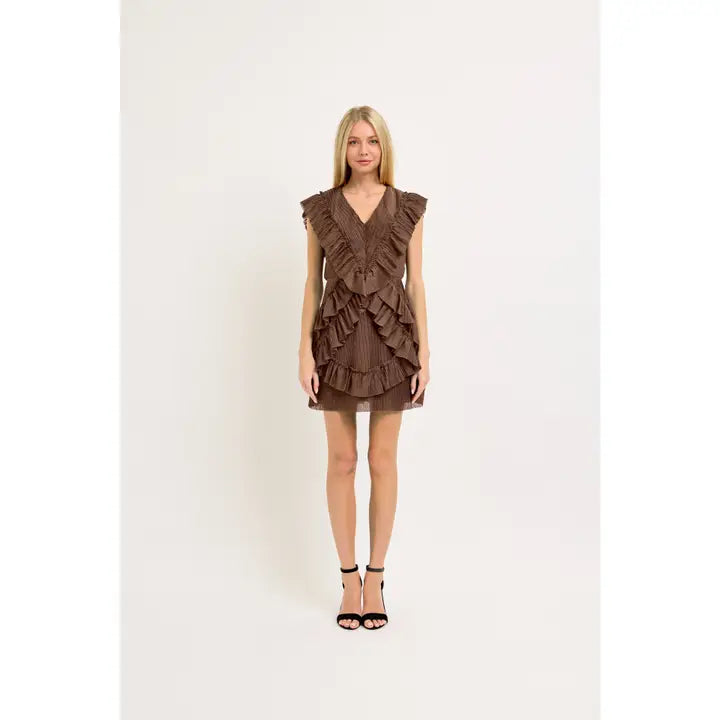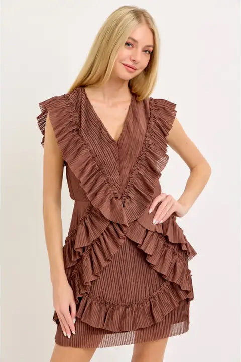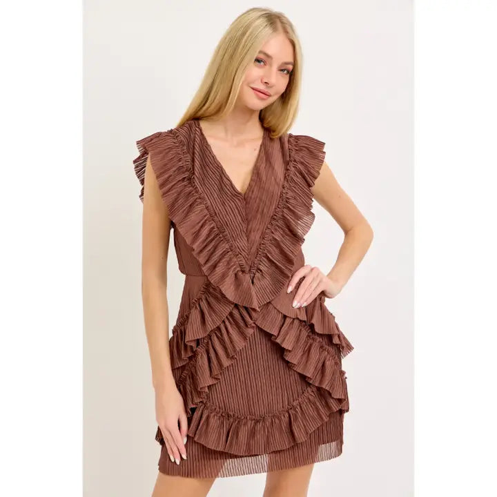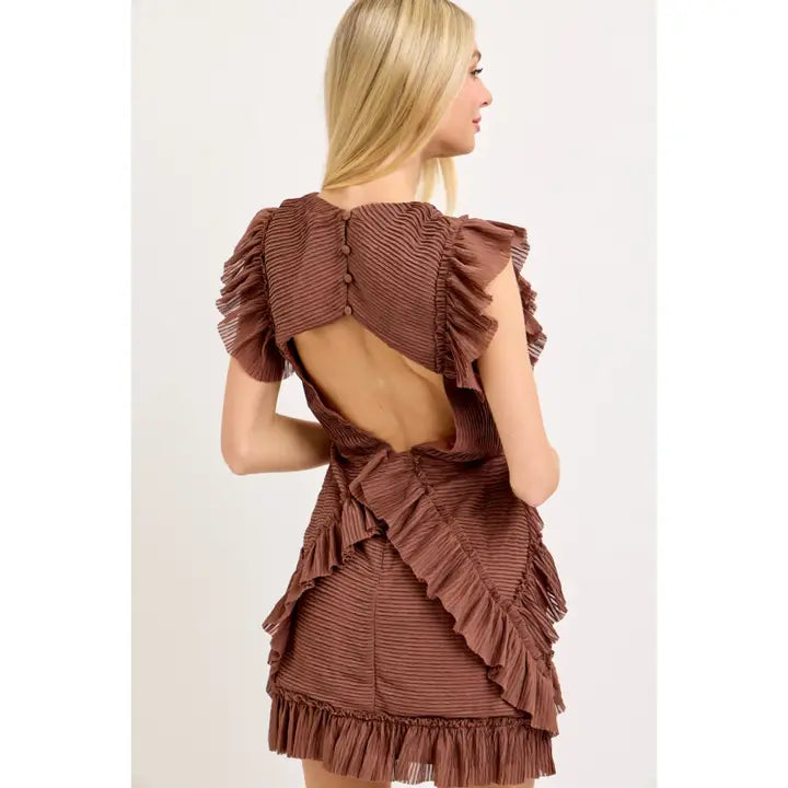 Step into style with the Mari Mini Dress! This playful pleated dress features flirty ruffles and a cutout back that’s sure to turn heads. Add a splash of charm to your wardrobe and watch your style bloom!