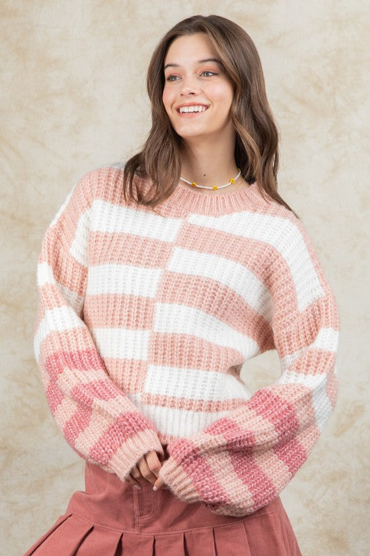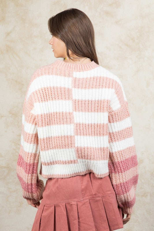 Wrap yourself in the comfort of this blush Oversized Cozy Color Block Striped Sweater Top. Crafted from soft cozy fabric with bold colorful stripes, this gorgeous sweater will be your favorite wardrobe addition for the season. Enjoy its generous oversized shape for maximum warmth and style.