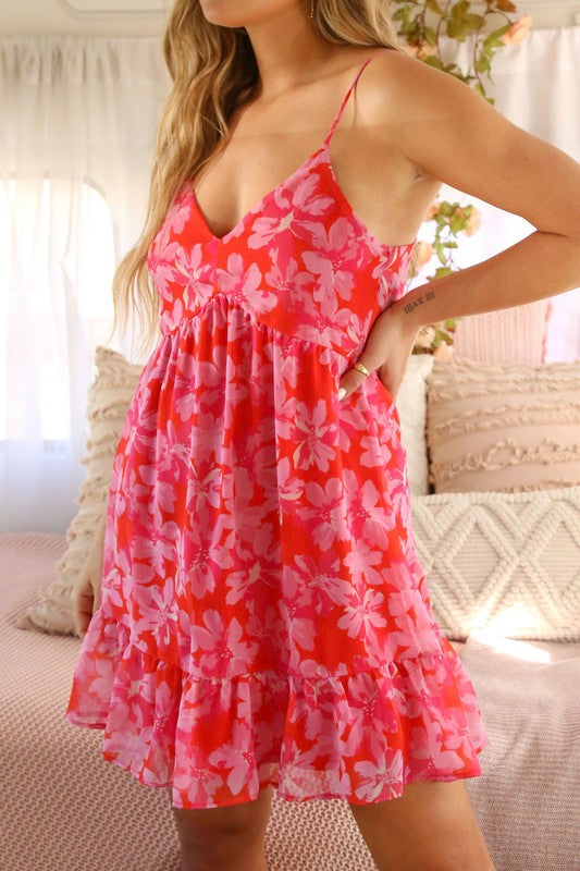 You're sure to attract attention in the Picking You Floral Print Tomato Mini Dress! Lightweight woven fabric boasts a gorgeous abstract print as it shapes wide tank straps that support a tie back bodice with a peekaboo cutout. High waist tops an A-line mini skirt that ends at a ruffled hem.