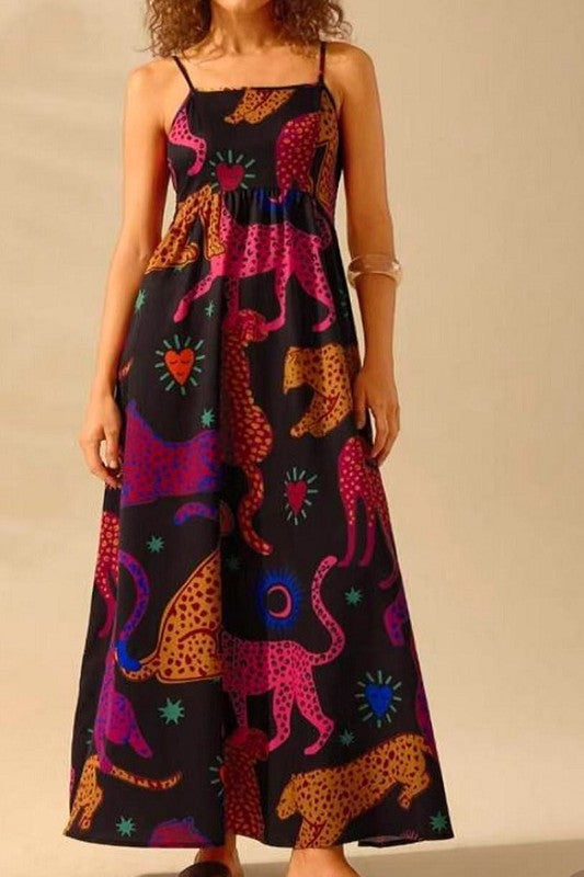 Unleash your wild side with our Tropic Safari Dress! This maxi dress features a fierce leopard pattern that will make you stand out from the crowd. Perfect for a day out or a night on the town, this dress will add a playful and edgy touch to your wardrobe.