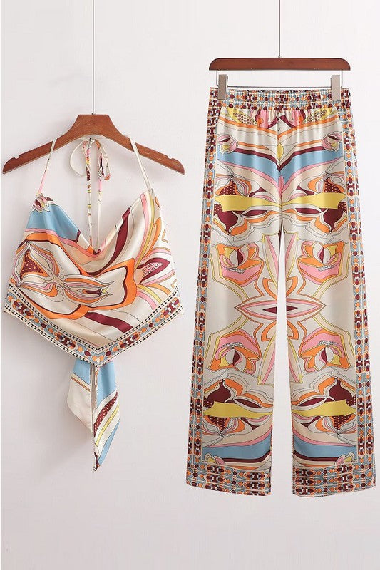 This Vacay Mode Set is perfect to get the most out of summer vacation. Featuring a trendy and chic halter neck crop top with elastic waist pants, this outfit is designed to be both stylish and comfortable, ready for any getaway. The lightweight fabric and perfect fit will keep you feeling fabulous and fashionable all season long.