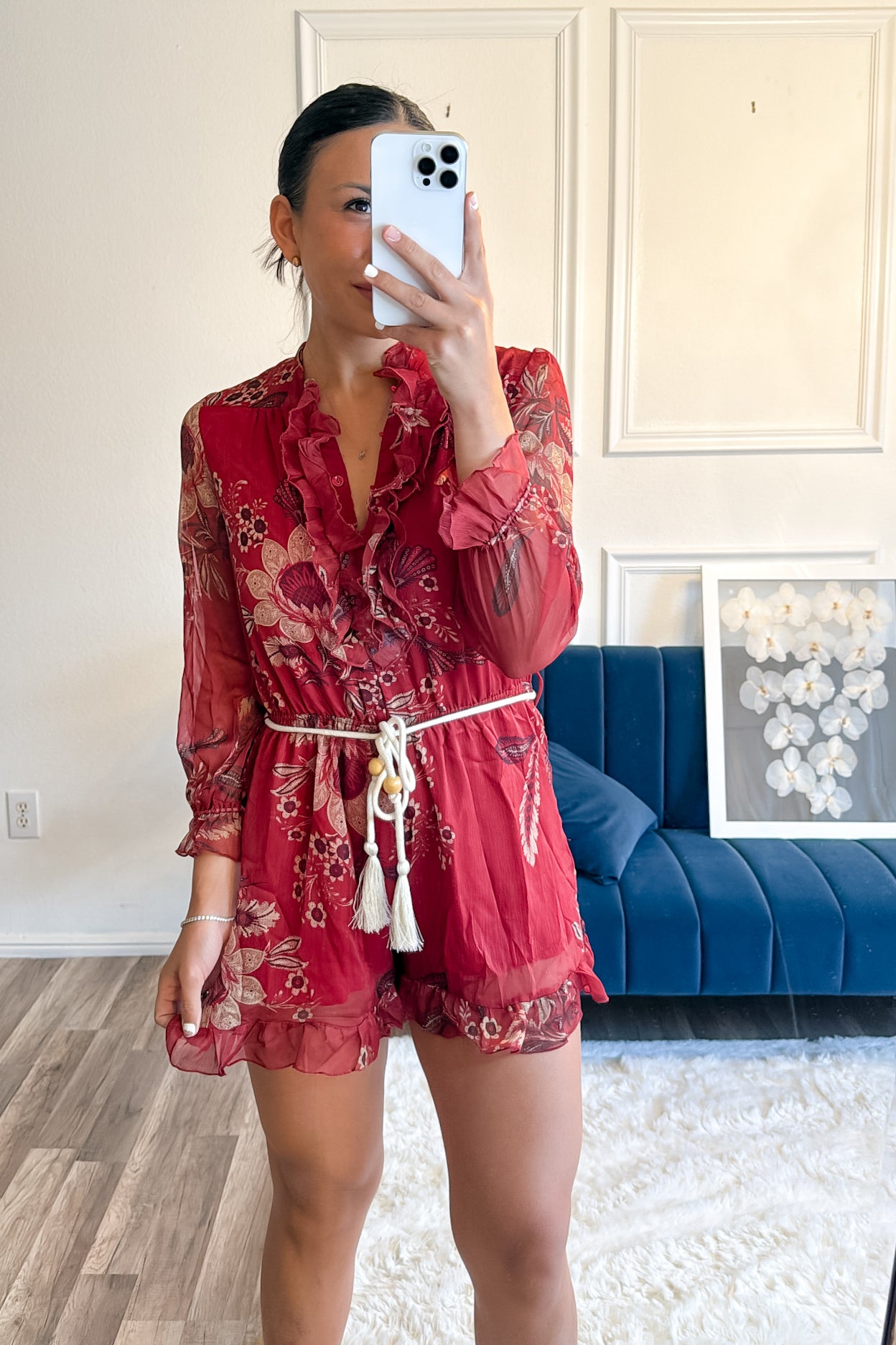 Upgrade your spring wardrobe with the Whisper Meadows Romper. This chic romper features a vibrant floral print, perfect for transitioning into the new season. Its stylish design is versatile and on-trend, making it a must-have for any fashion-forward individual. Stay fashionably comfortable with this must-have spring piece.